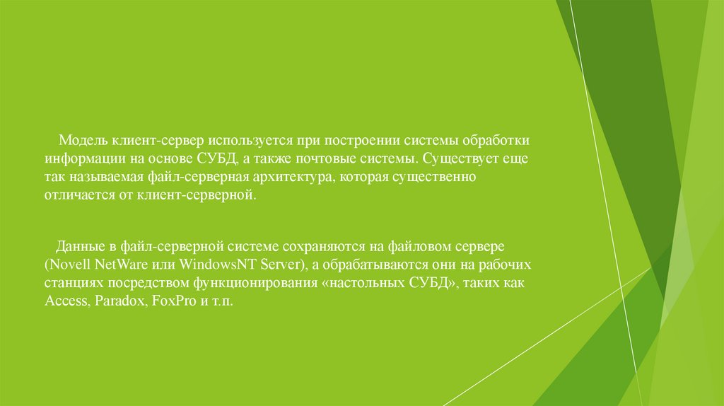 так называемая файл-серверная архитектура, которая существенно