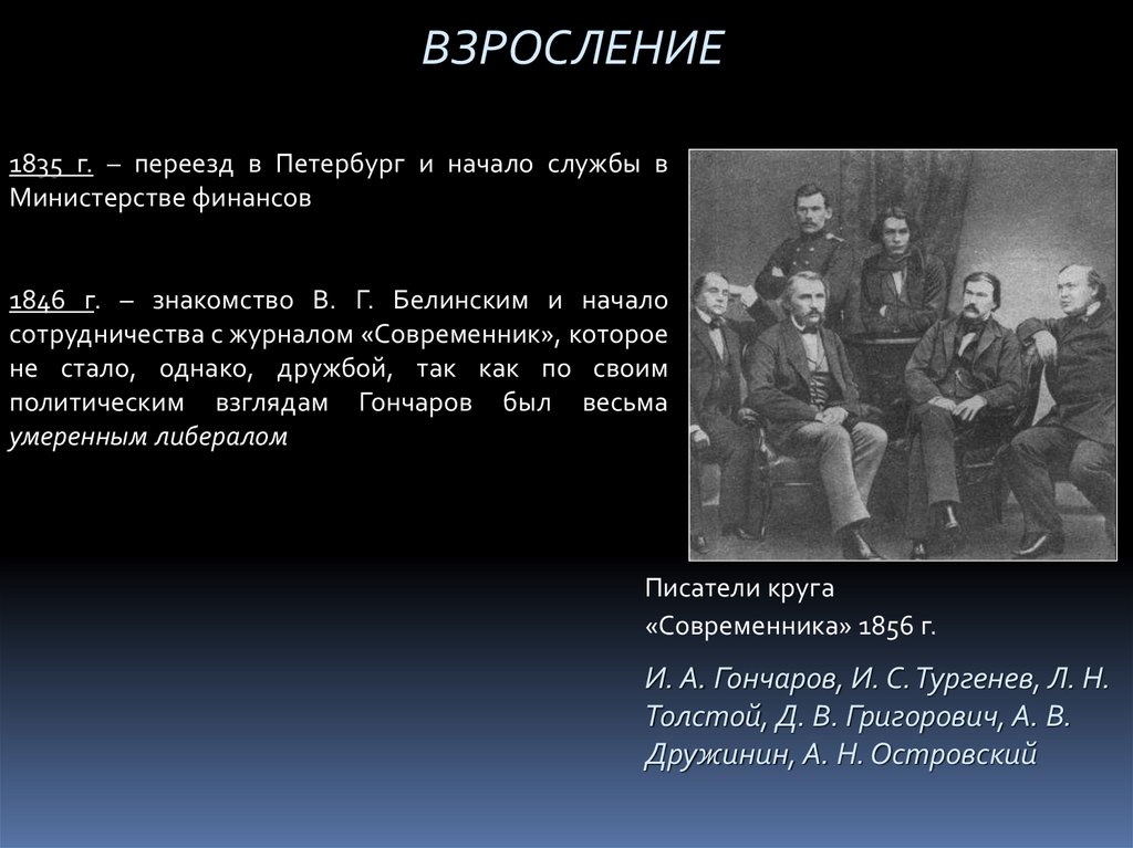 И. А. Гончаров, И. С. Тургенев, Л. Н.