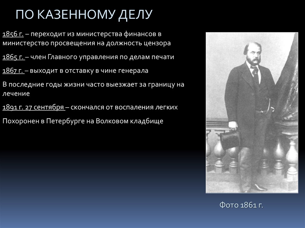 1865 г. – член Главного управления по делам печати