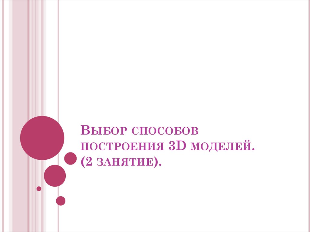ВЫБОР СПОСОБОВПОСТРОЕНИЯ 3D МОДЕЛЕЙ.