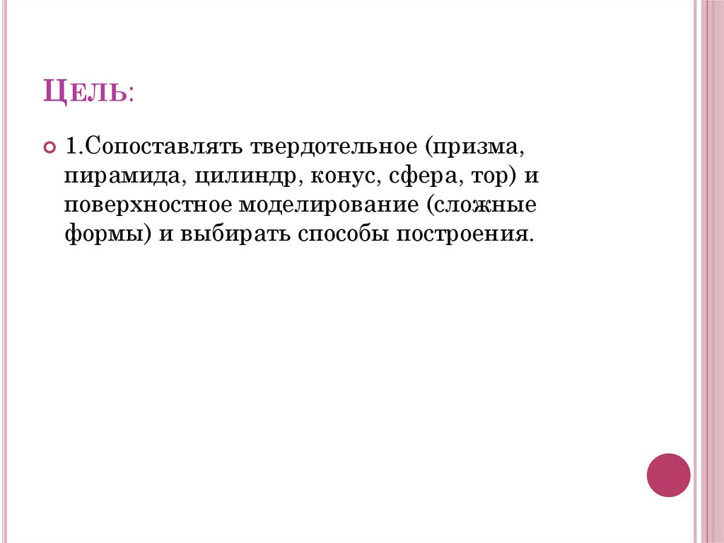 ЦЕЛЬ:1.Сопоставлять твердотельное (призма,