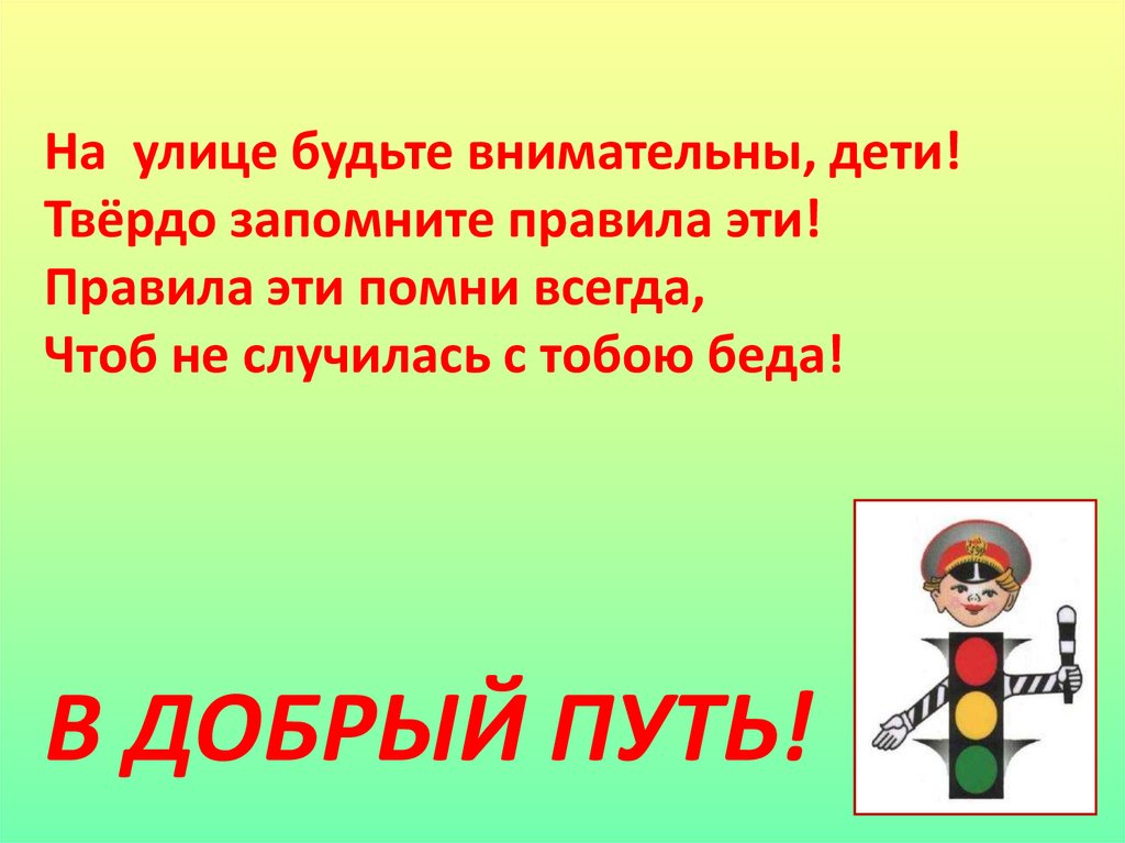 На улице будьте внимательны, дети!Твёрдо запомните правила эти!