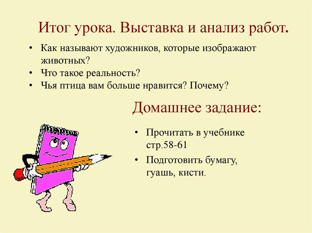 Итог урока. Выставка и анализ работ.• Как называют художников, которые изображают
