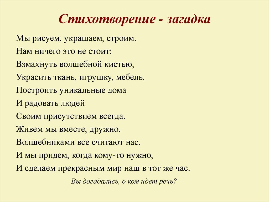 Стихотворение - загадкаМы рисуем, украшаем, строим.