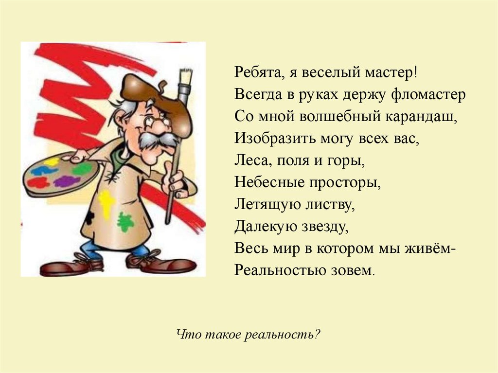 Цели и задачи:• познакомиться с понятиями «реальность»,