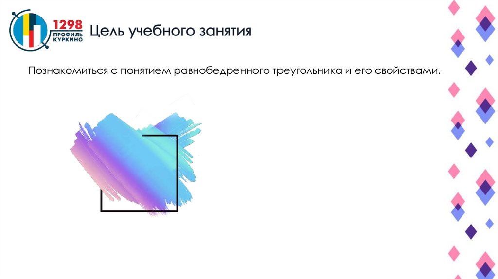Познакомиться с понятием равнобедренного треугольника и его свойствами.3.