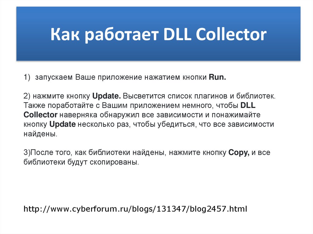 Как работает DLL Collector1) запускаем Ваше приложение нажатием кнопки Run.