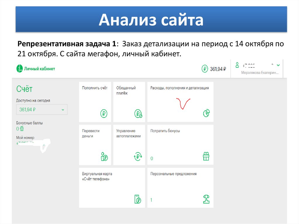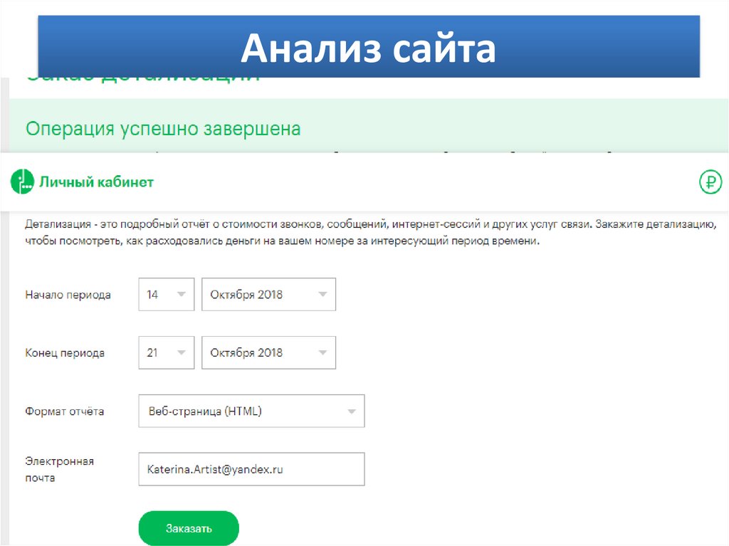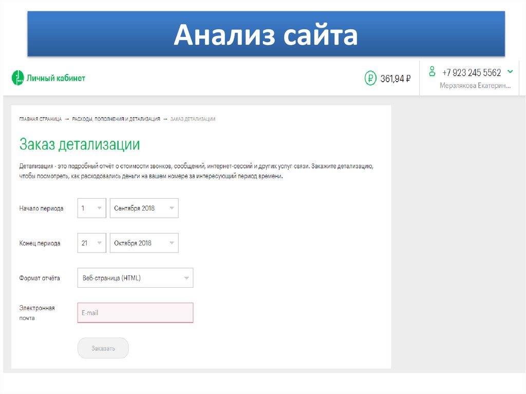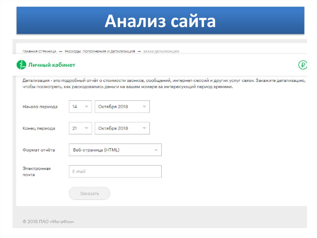 Анализ сайтаРепрезентативная задача 1: Заказ детализации на период с 14 октября по