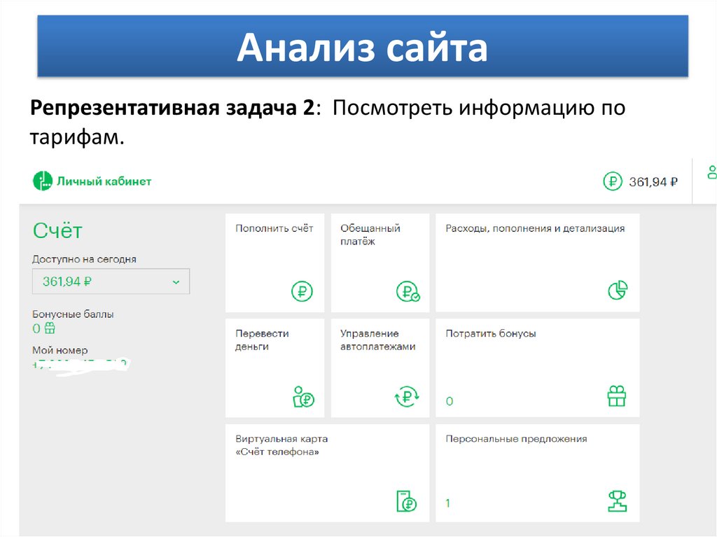 Анализ сайтаРепрезентативная задача 2: Посмотреть информацию по