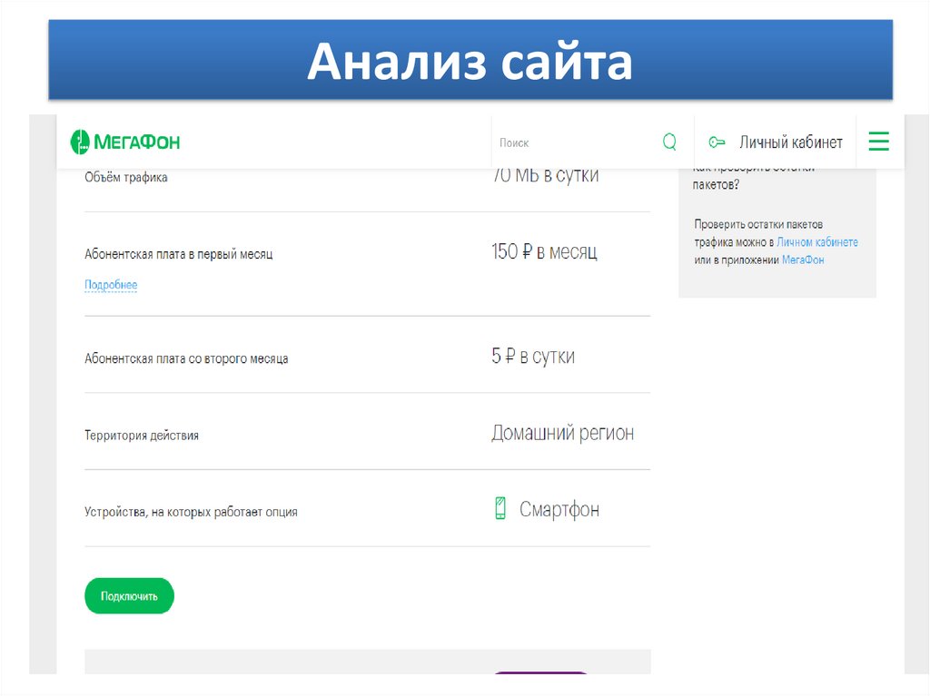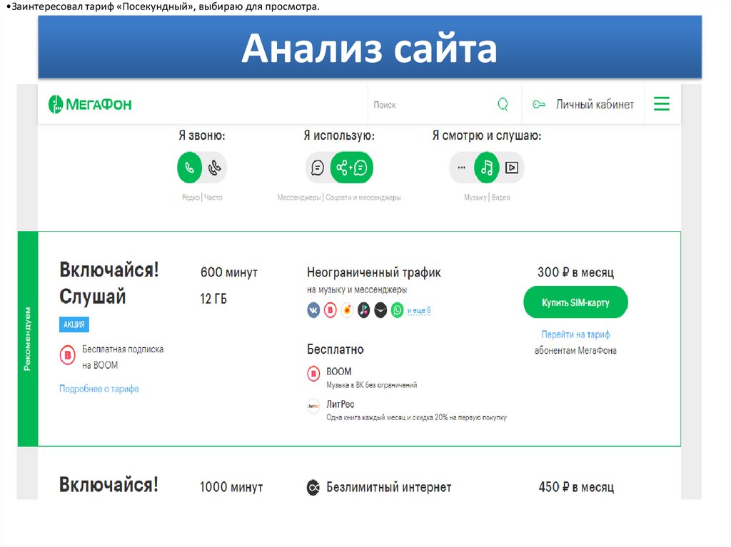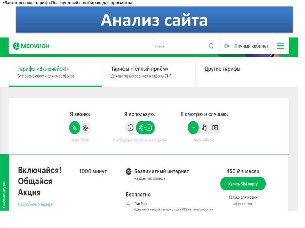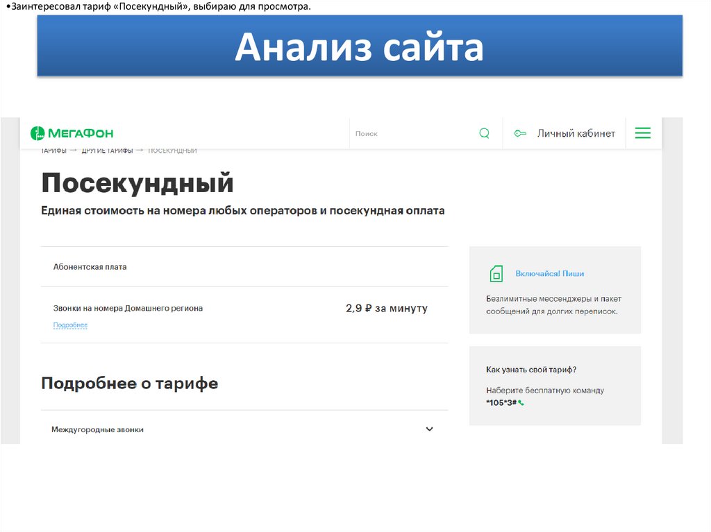 •Заинтересовал тариф «Посекундный», выбираю для просмотра.Анализ сайта