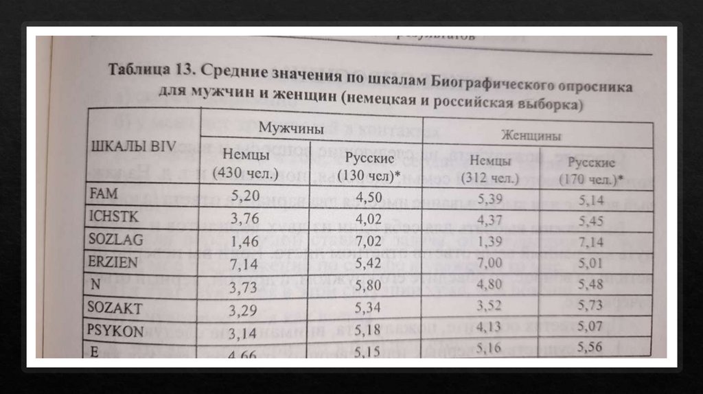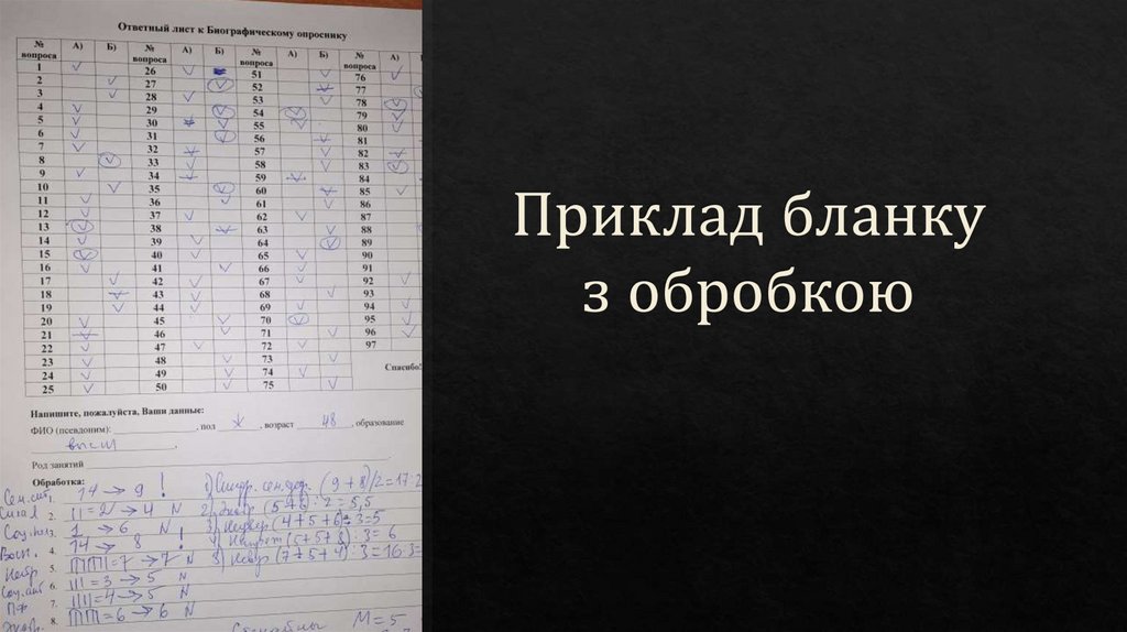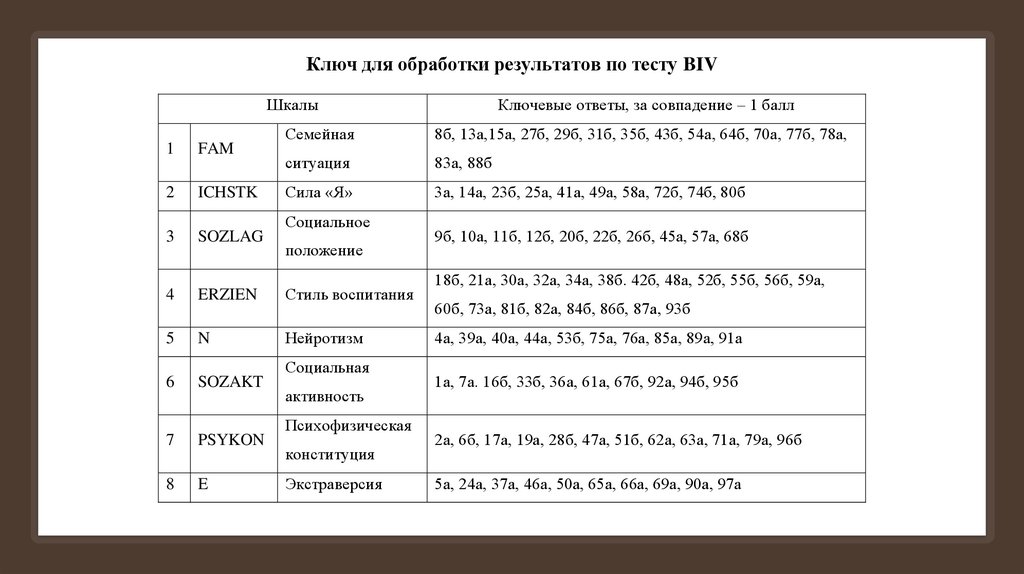 Ключ для обработки результатов по тесту BIVШкалы