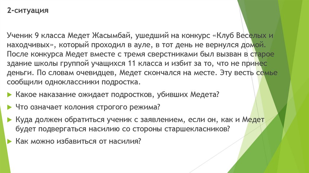 2-ситуацияУченик 9 класса Медет Жасымбай, ушедший на конкурс «Клуб Веселых и