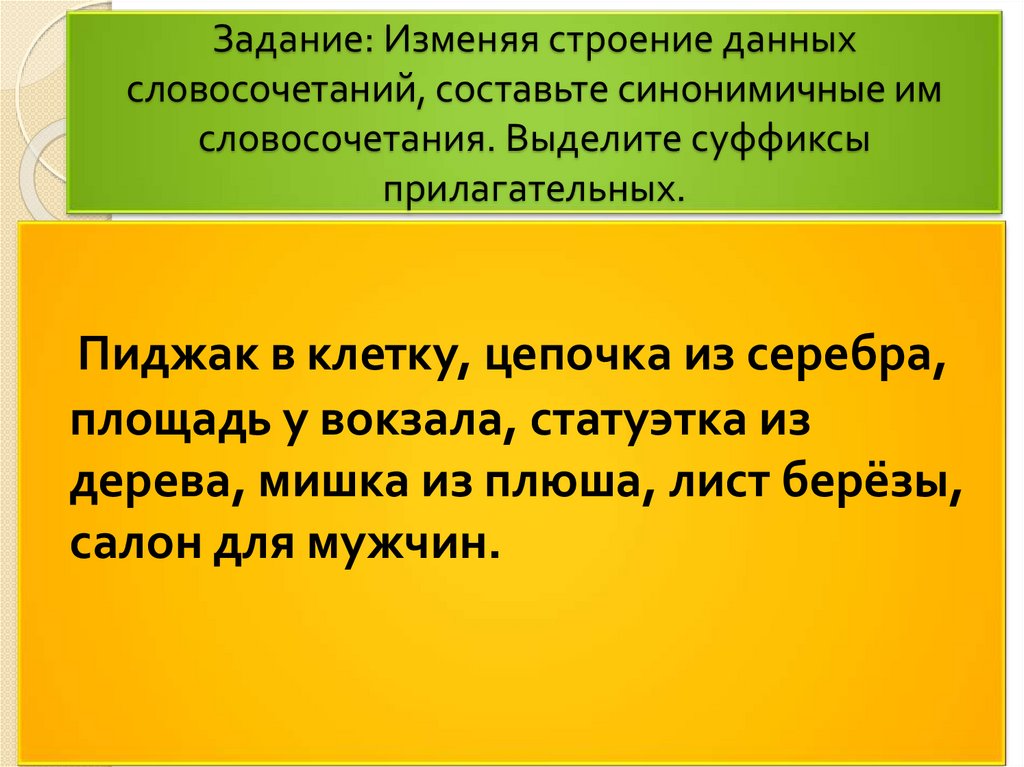 Задание: Изменяя строение данныхсловосочетаний, составьте синонимичные им