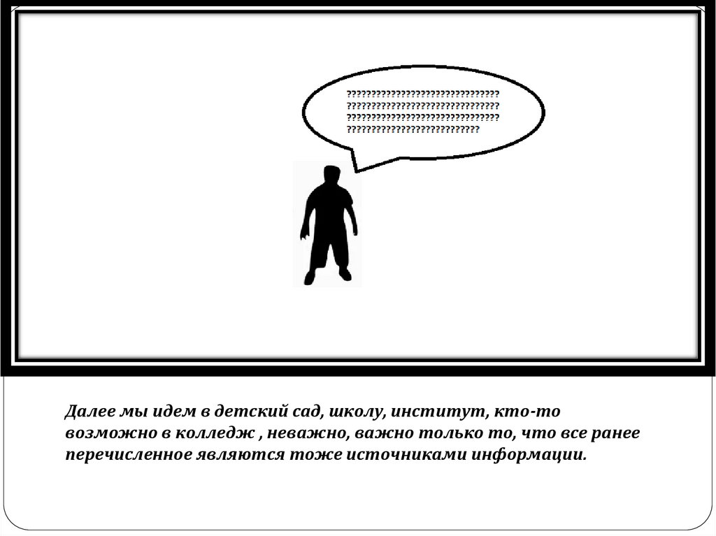 Далее мы идем в детский сад, школу, институт, кто-товозможно в колледж , неважно, важно только то, что все ранее