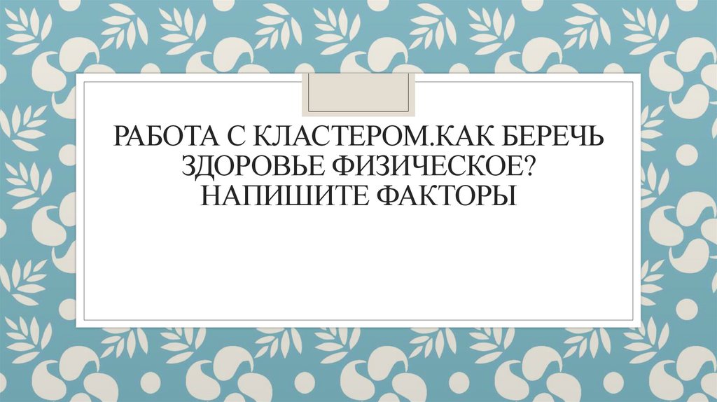 РАБОТА С КЛАСТЕРОМ.КАК БЕРЕЧЬЗДОРОВЬЕ ФИЗИЧЕСКОЕ?