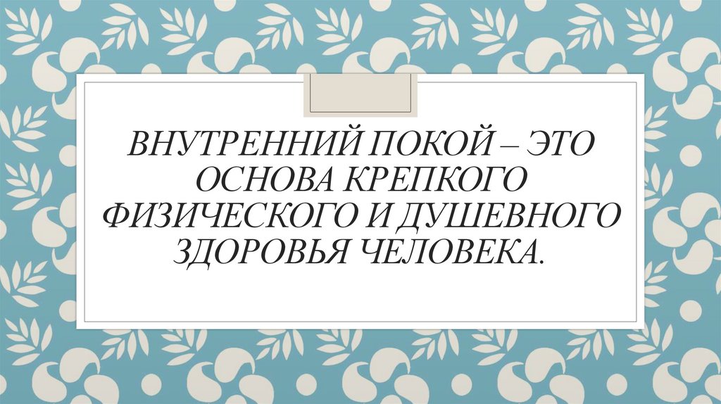 ВНУТРЕННИЙ ПОКОЙ – ЭТООСНОВА КРЕПКОГО