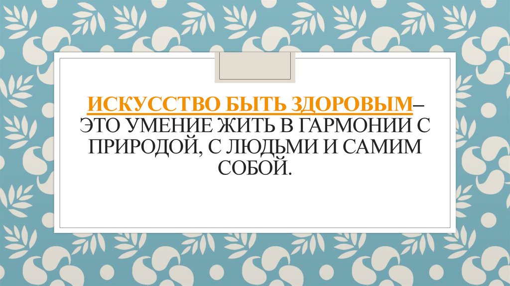 ИСКУССТВО БЫТЬ ЗДОРОВЫМ–ЭТО УМЕНИЕ ЖИТЬ В ГАРМОНИИ С