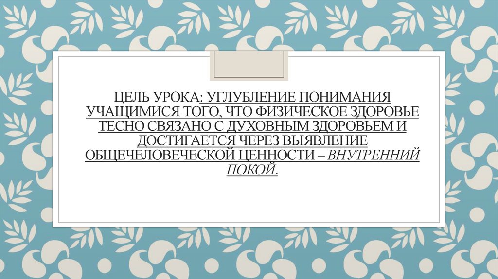 ТЕМА УРОКА: ДУХОВНОЕЗДОРОВЬЕ ЧЕЛОВЕКА