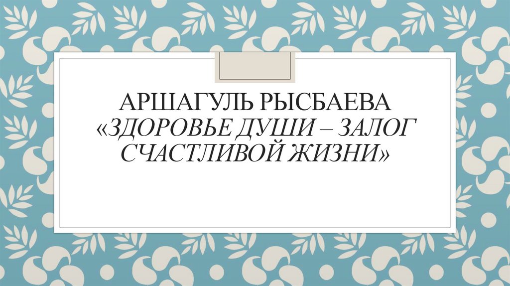 АРШАГУЛЬ РЫСБАЕВА«ЗДОРОВЬЕ ДУШИ – ЗАЛОГ
