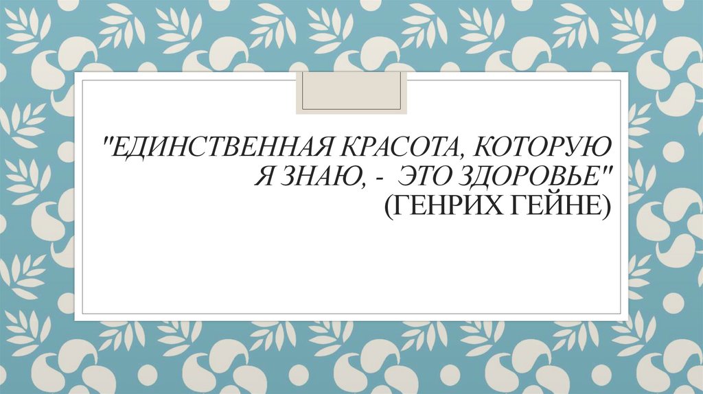 "ЕДИНСТВЕННАЯ КРАСОТА, КОТОРУЮЯ ЗНАЮ, - ЭТО ЗДОРОВЬЕ"