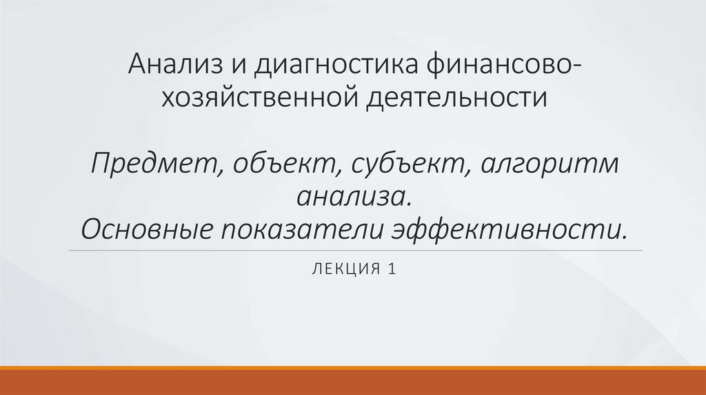 Анализ и диагностика финансовохозяйственной деятельностиПредмет, объект, субъект, алгоритм