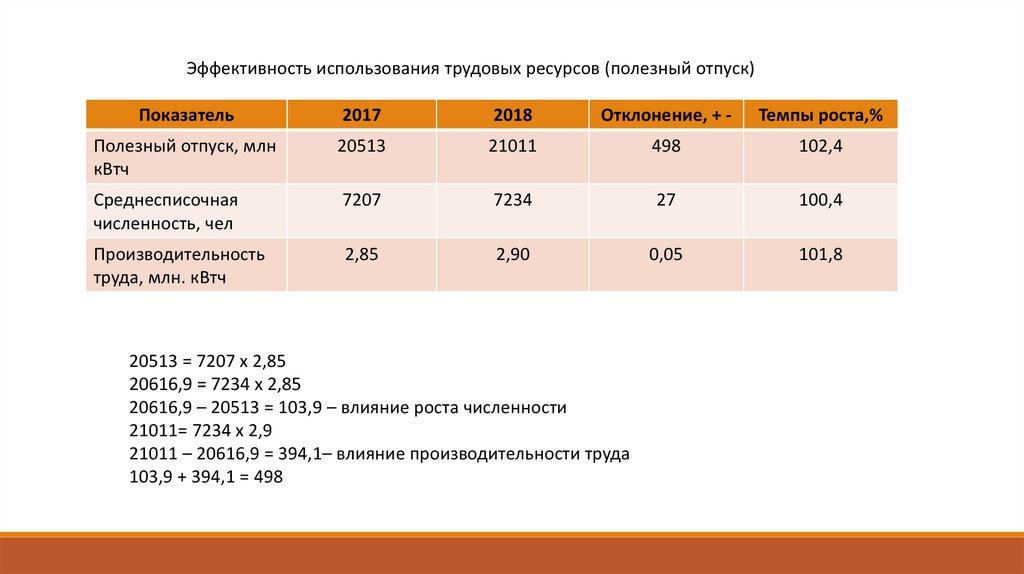 Эффективность использования трудовых ресурсов (полезный отпуск)Показатель