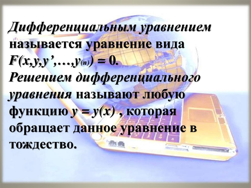 Дифференциальным уравнениемназывается уравнение вида