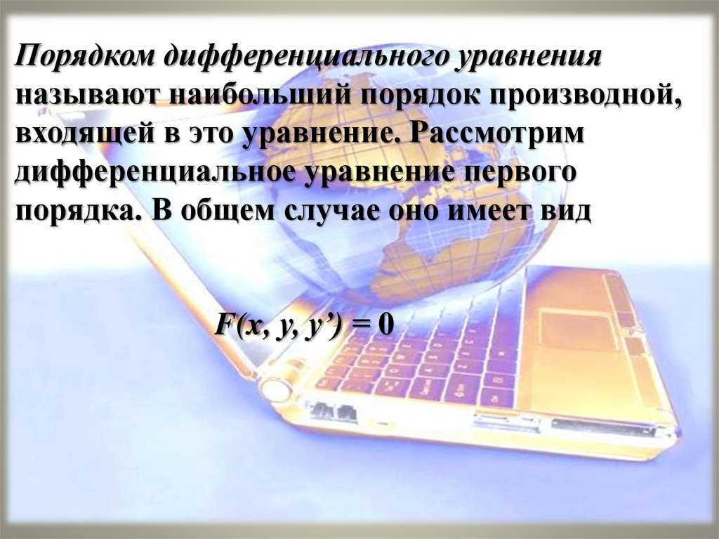 Порядком дифференциального уравненияназывают наибольший порядок производной,