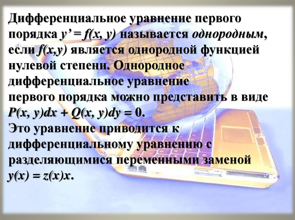 Дифференциальное уравнение первогопорядка y’ = f(x, y) называется однородным,