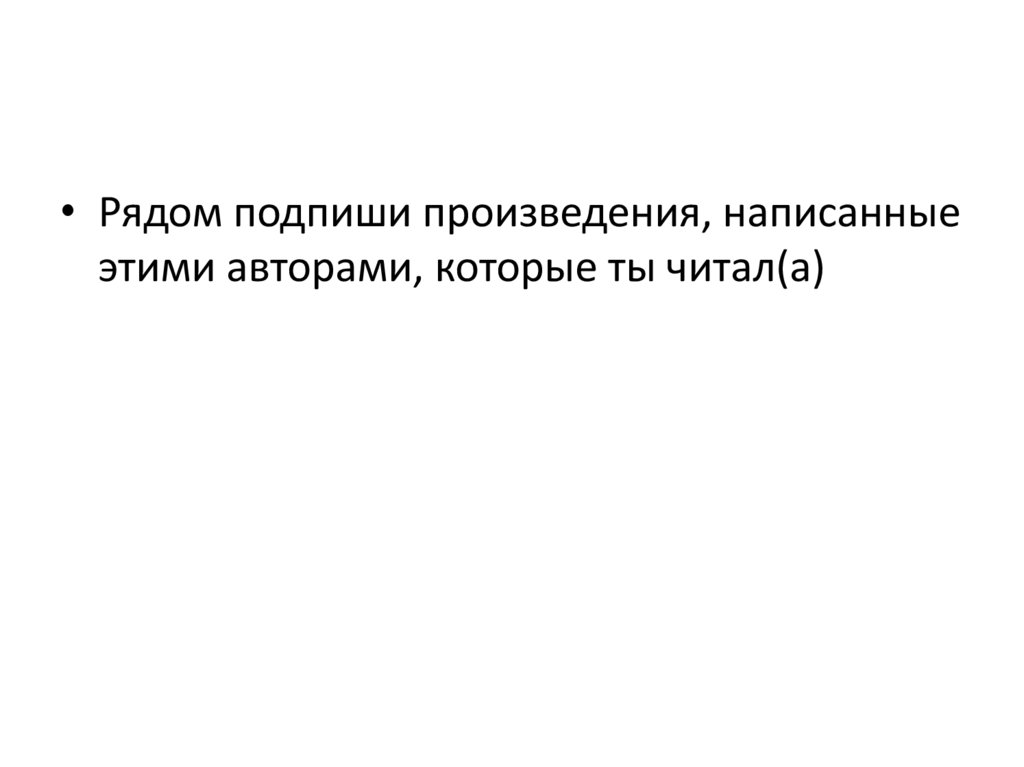 • Рядом подпиши произведения, написанныеэтими авторами, которые ты читал(а)