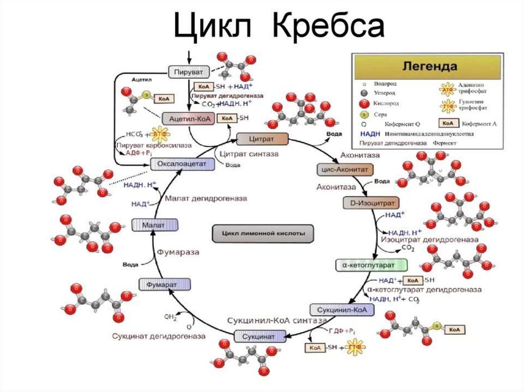Цикл Кребса. Основные и промежуточные соединения цикла и продукты реакции