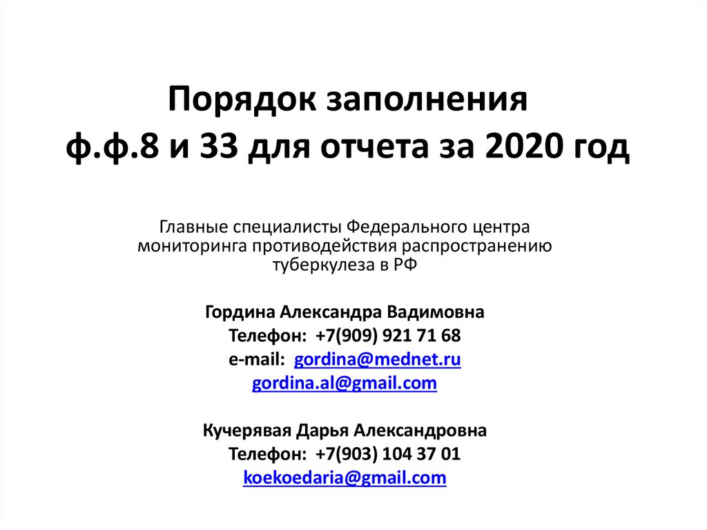 Порядок заполнения ф.ф.8 и 33 для отчета. Мониторинг противодействия распространению туберкулеза в РФ