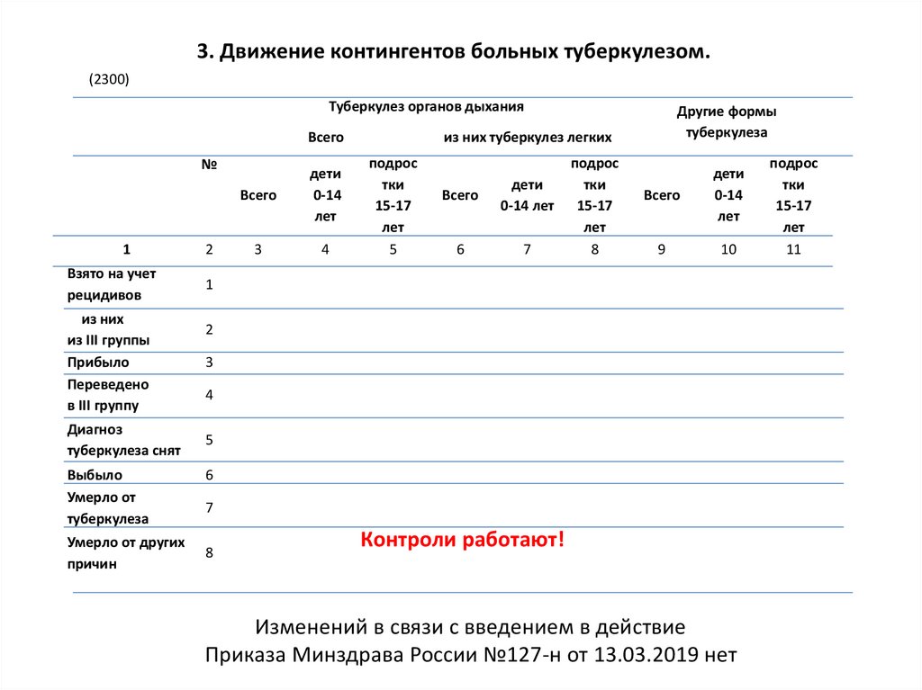 3. Движение контингентов больных туберкулезом.(2300)