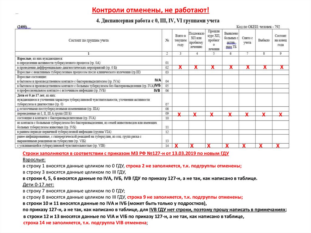в строки 4, 5, 6 вносятся данные по IVА, IVБ, IVВ ГДУ по приказу 127-н, а не так, как написано в таблице.