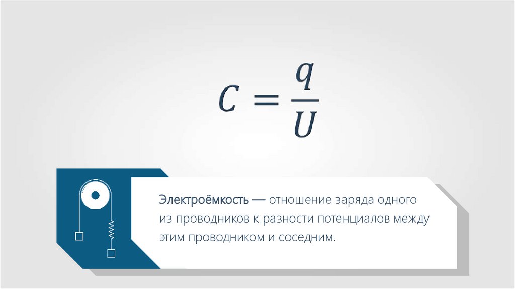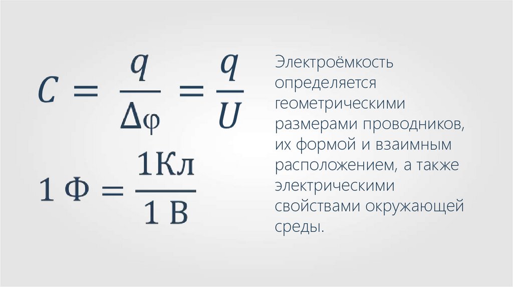 Электроёмкость — отношение заряда одногоиз проводников к разности потенциалов между