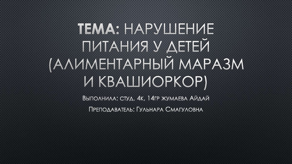 Нарушение питания у детей (алиментарный маразм и квашиоркор)
