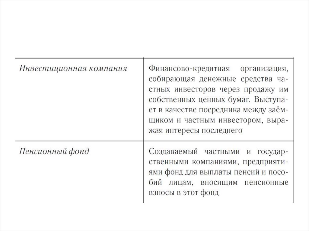 Виды финансовых институтов