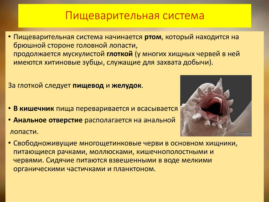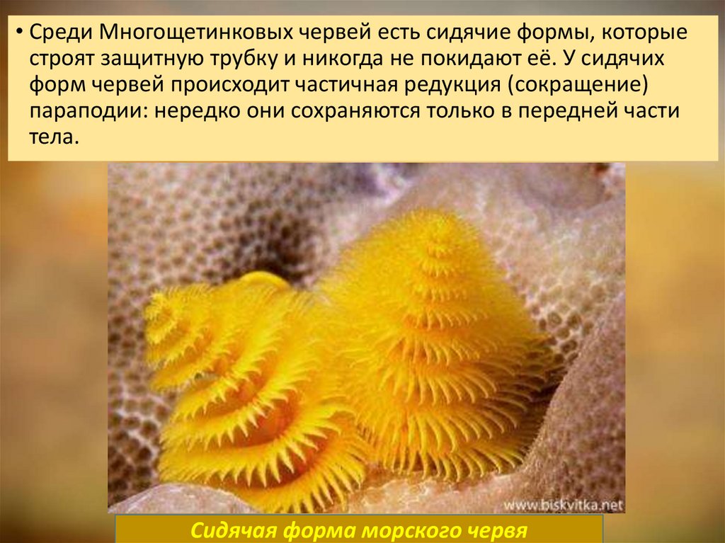 червями. Сидячие питаются взвешенными в воде мелкими