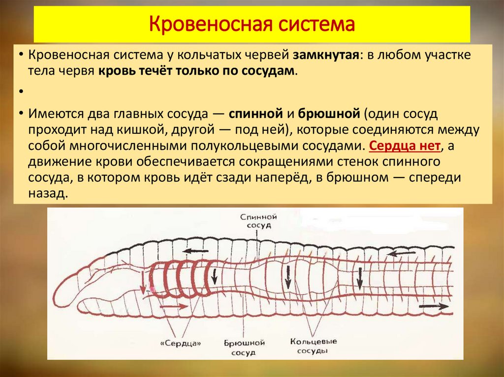 тела червя кровь течёт только по сосудам.