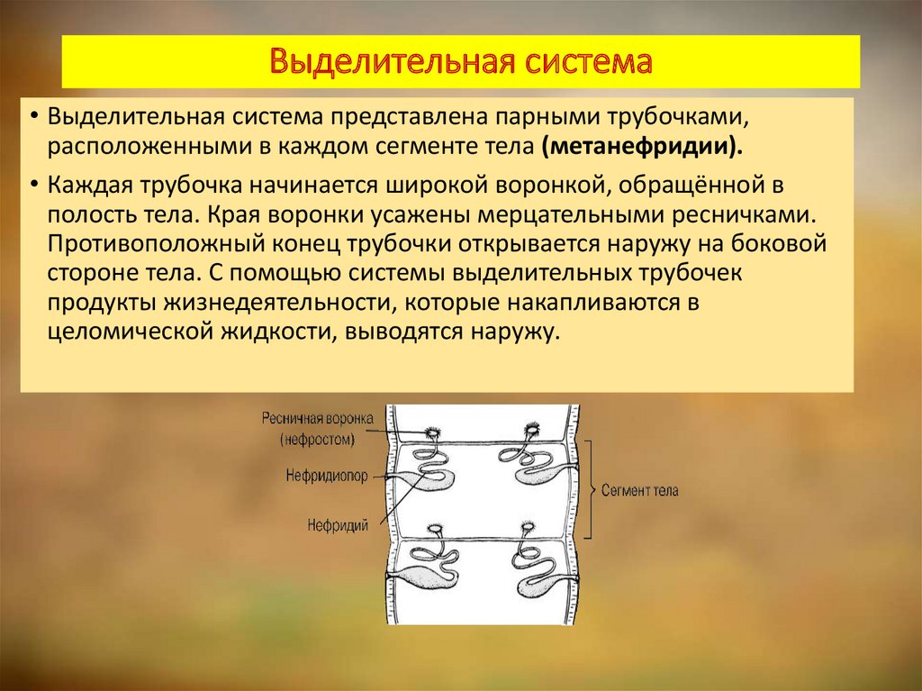 расположенными в каждом сегменте тела (метанефридии).