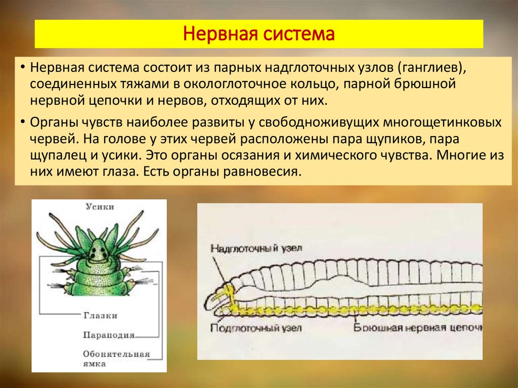 • Органы чувств наиболее развиты у свободноживущих многощетинковых