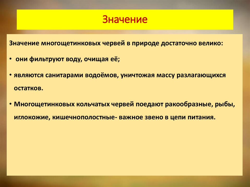 ЗначениеЗначение многощетинковых червей в природе достаточно велико: