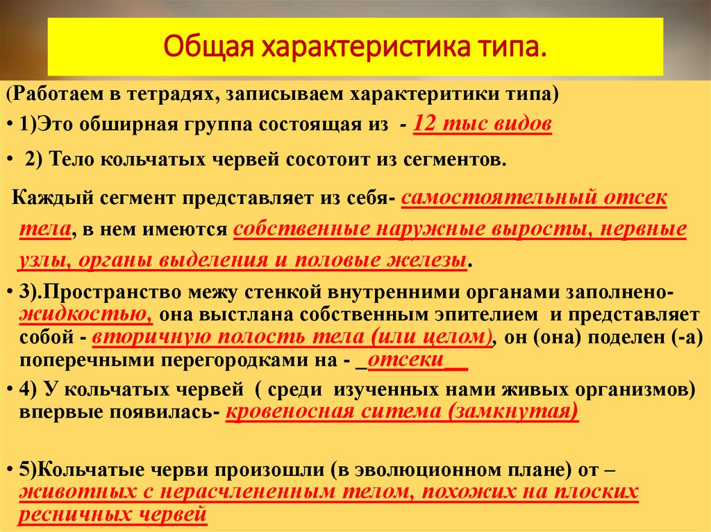 Общая характеристика типа.(Работаем в тетрадях, записываем характеритики типа)