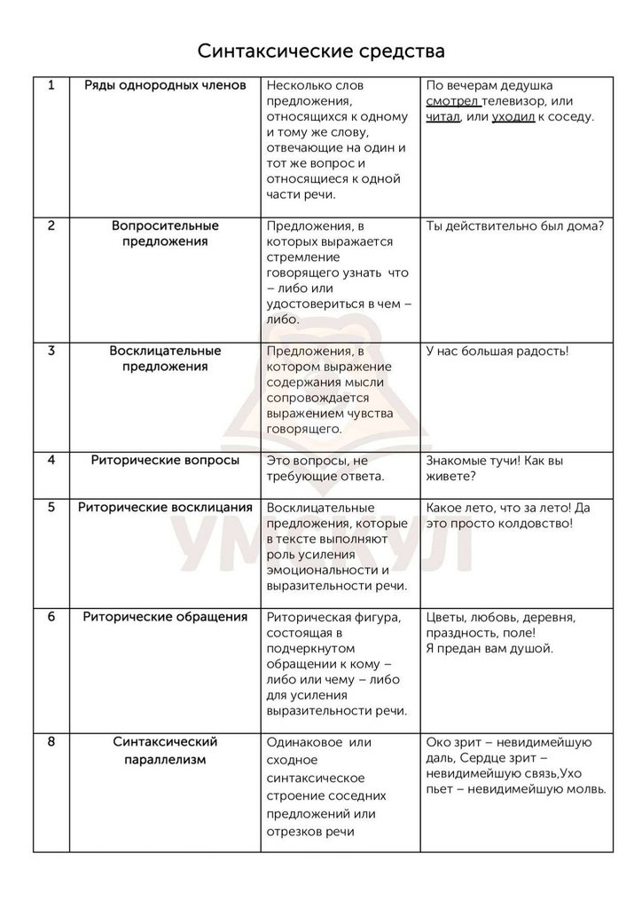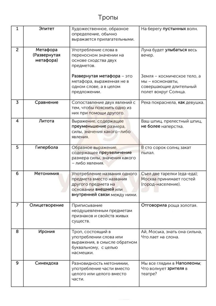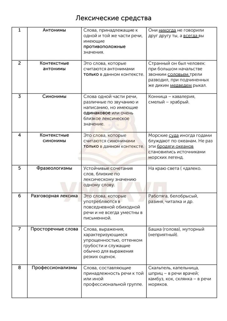 Выразительные средства языка: тропы, фигуры речи, лексические и синтаксические средства