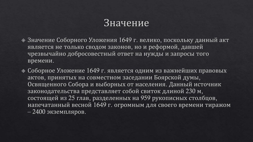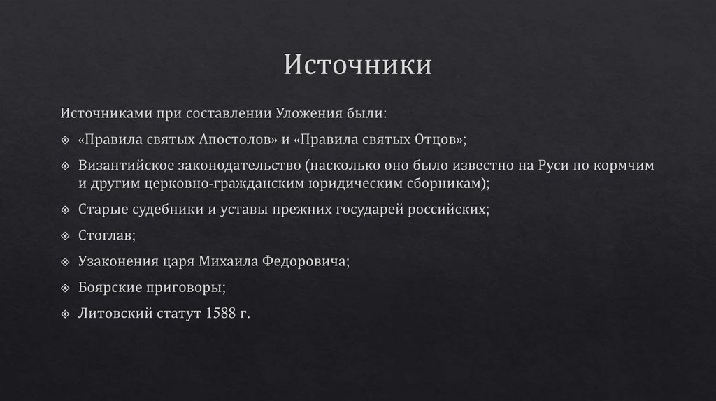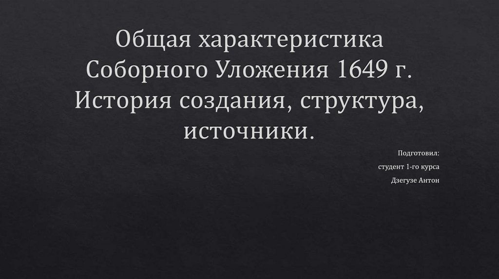 Общая характеристика Соборного Уложения 1649 г. История создания, структура, источники