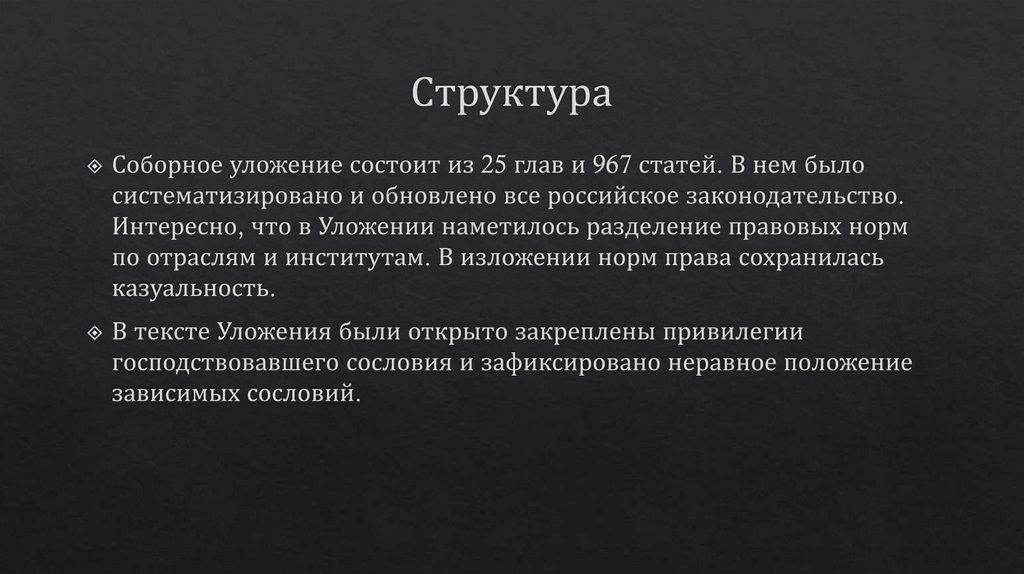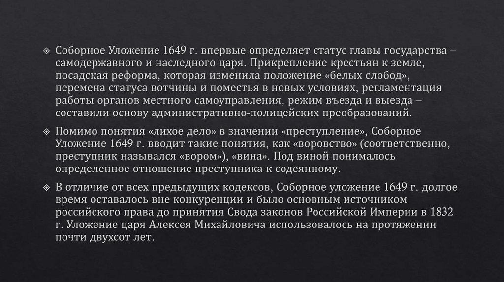 Общая характеристика соборного уложения 1649 г. История создания, структура, источники