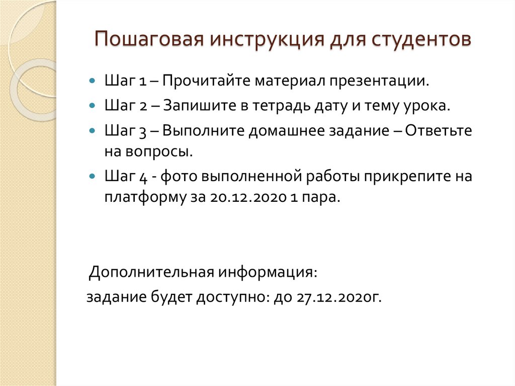 Пошаговая инструкция для студентовШаг 1 – Прочитайте материал презентации.