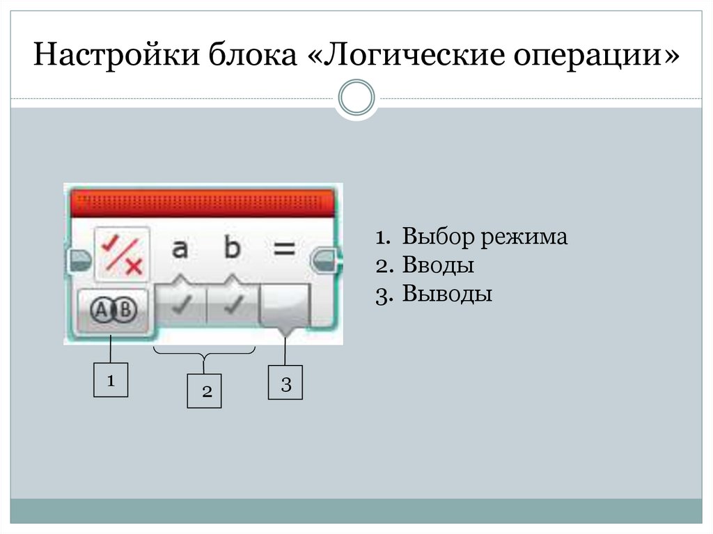 Настройки блока «Логические операции»1. Выбор режима