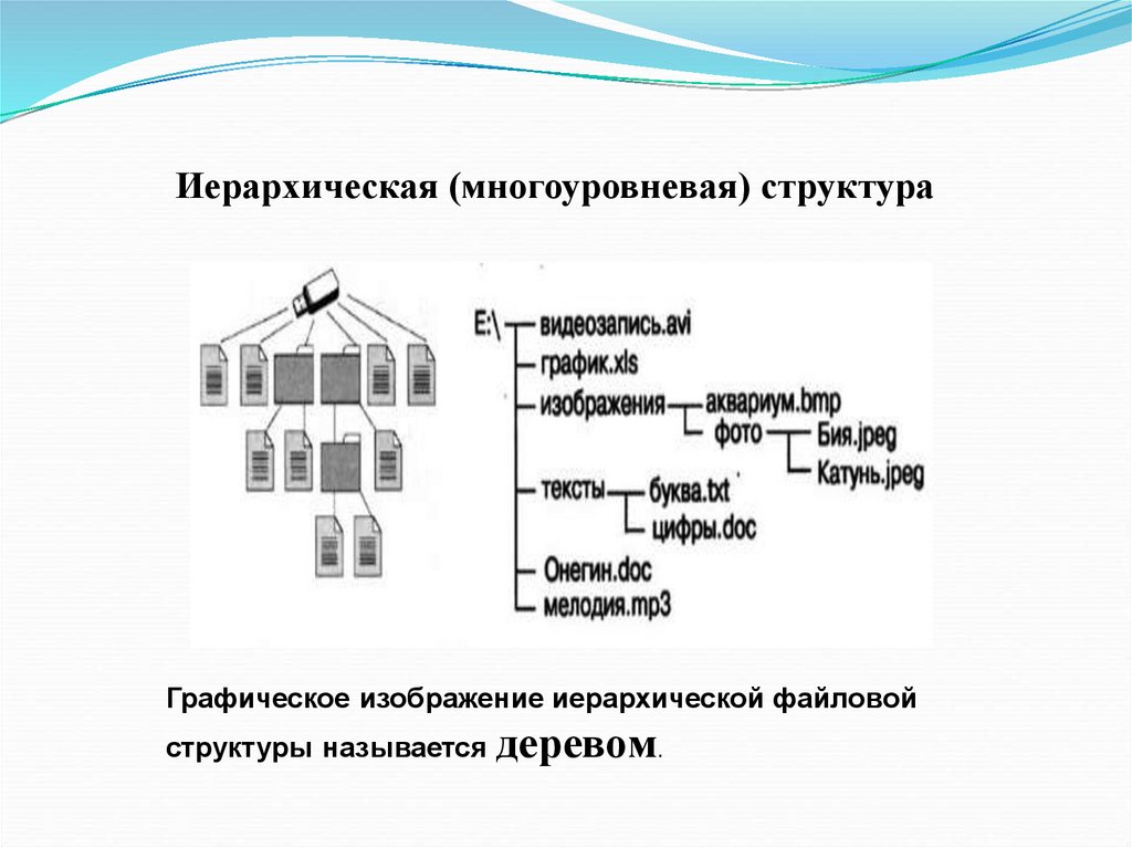 Иерархическая (многоуровневая) структураГрафическое изображение иерархической файловой