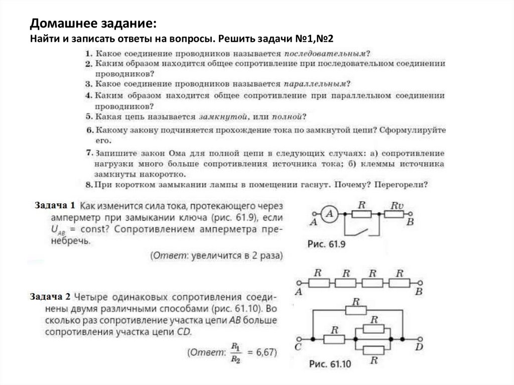 Домашнее задание:Найти и записать ответы на вопросы. Решить задачи №1,№2